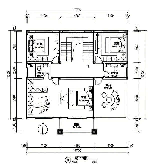 这种12.7×11.2米的三层设计,不是拼命堆功能,而是用“堂屋+分区社交”“套房+公共起居”“露台+层次立面”去把一家人的关系安排得井井有条。